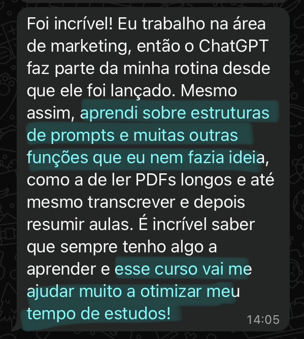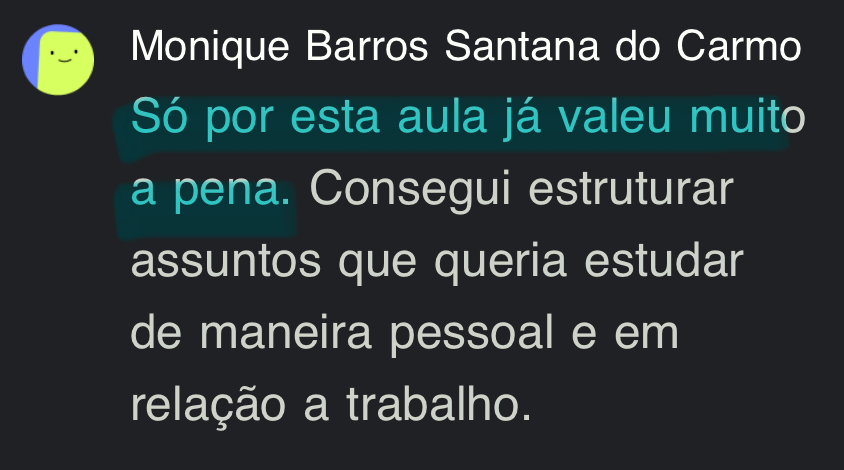Um ponto chave no curso é a explicação em como dinamizar a forma como você estuda…” Letícia T.