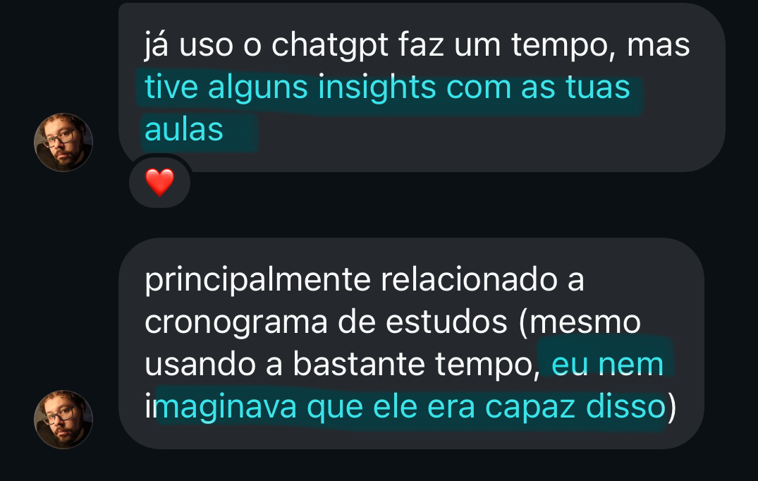 E a verdade é: eu não precisava estar aqui. Já venci minhas provas e minha carreira. Mas escolhi compartilhar esse conhecimento porque sei como é se sentir perdido, sem saber por onde começar, afogado em conteúdos.