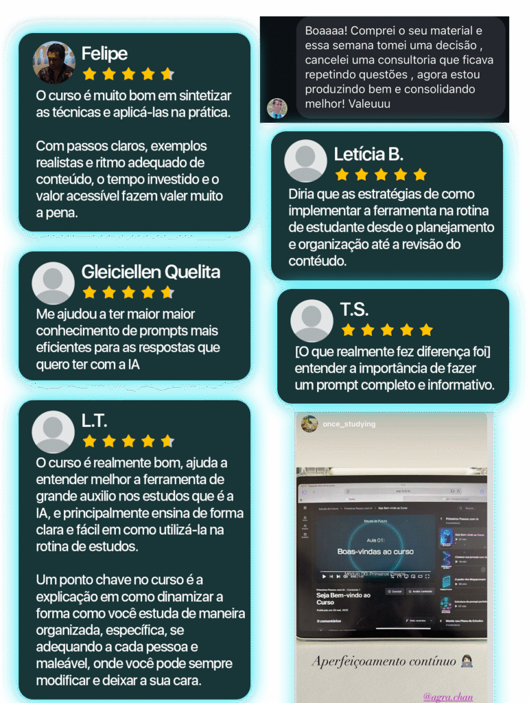- Destaque na faculdade ou no trabalho — pela clareza e organização dos seus estudos